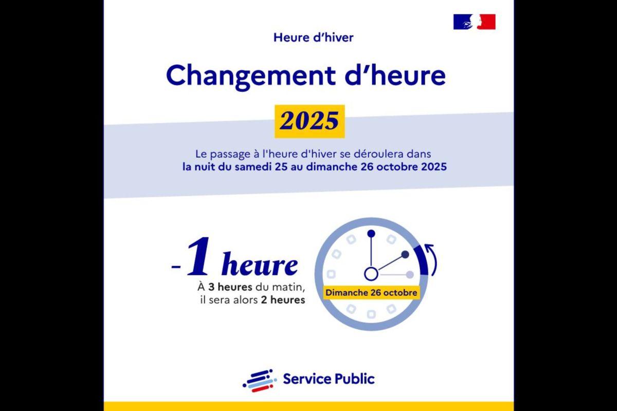 Chaque année, au mois d’octobre, intervient le passage à l’heure d’hiver. Il faudra penser à reculer vos montres d’une heure dans la nuit du samedi 25 au dimanche 26 octobre 2025 : à 3 heures du matin, il sera alors 2 heures.